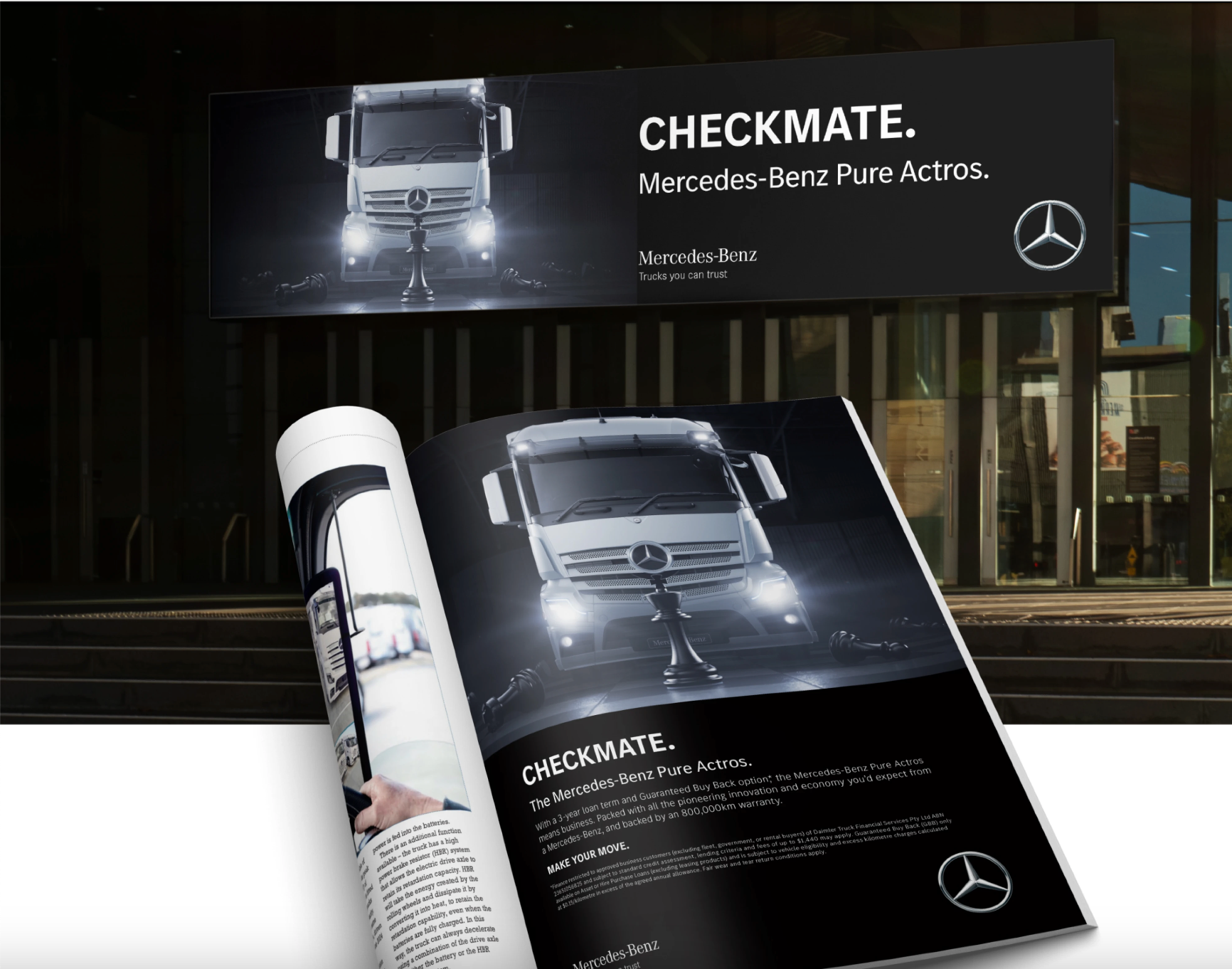Mercedes Benz wanted to launch their ‘Pure’ Actros model, a truck that at its most basic is better than almost all its competitors. They wanted to convey this dominance and advantage to buyers in a Mercedes way. The concept was inspired by the fact that when you buy anything from Mercedes, it’s game over. This campaign was rolled out across digital banners, page takeovers and print.